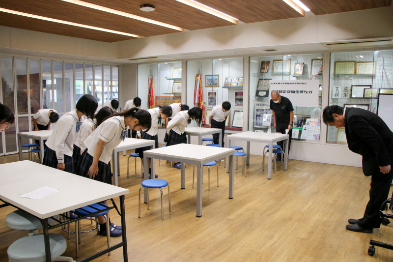 この授与式では、日商簿記検定2級など日本文理大学附属高等学校校友会規程に基づいた合格者22名に対し、奨励金が授与されました。